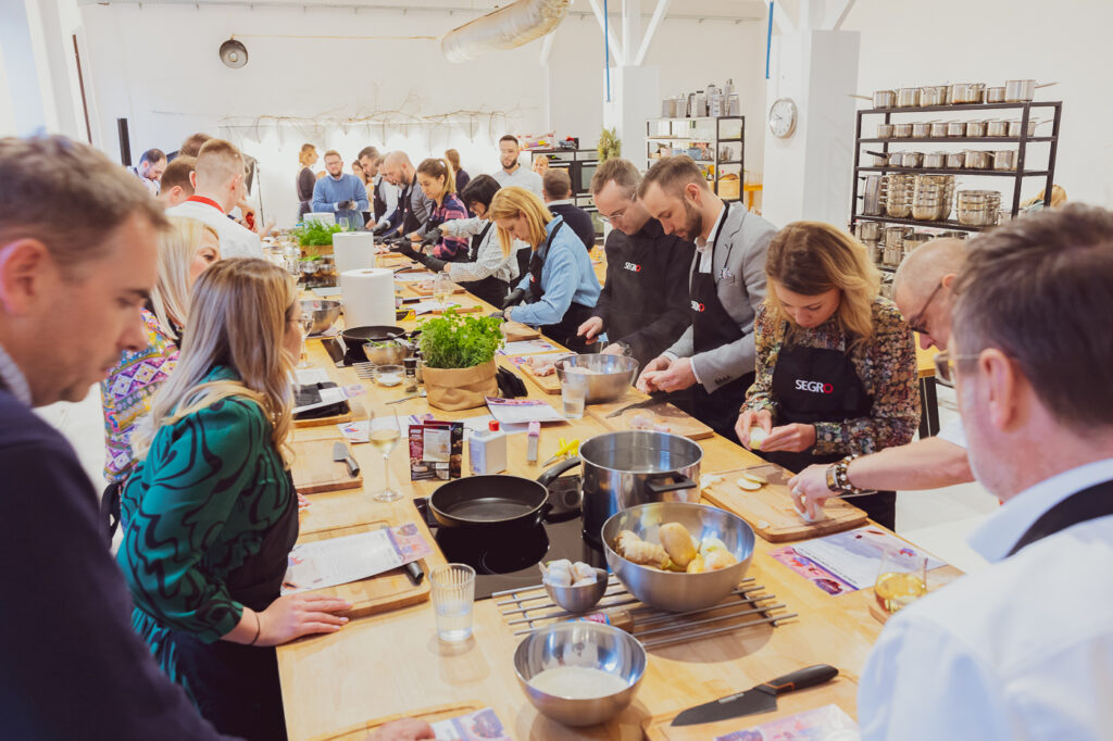Integracja przez wspólne gotowanie. Zacieśnij więzi w zespole dzięki wspólnemu przygotowywaniu posiłków pod okiem naszych doświadczonych trenerów kulinarnych.